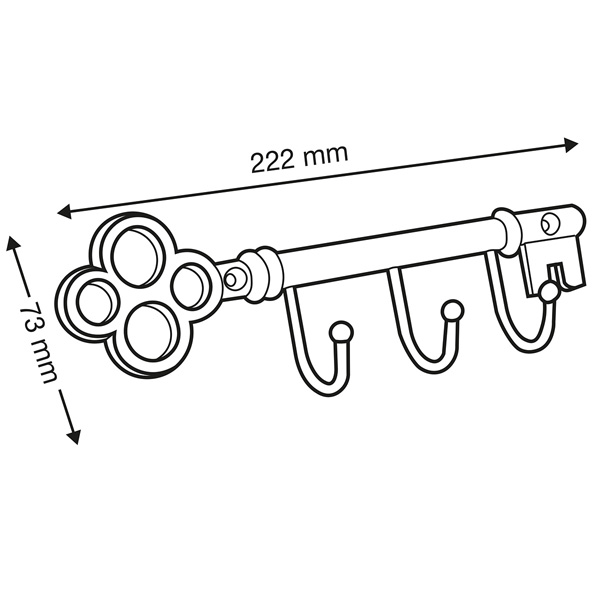 Perchero en forma de llave con tres ganchos.
