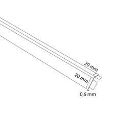 Longitud: 2,5 m. Perfil 20x20 mm. Espesor: 0,6 mm