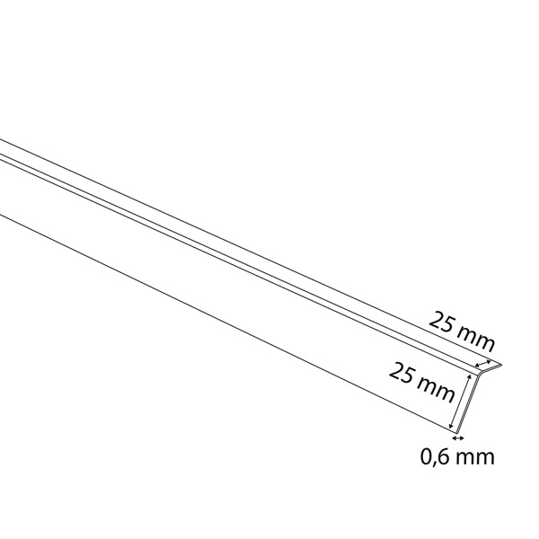 Longitud: 2,5 m. Perfil 25x25 mm. Espesor: 0,6 mm