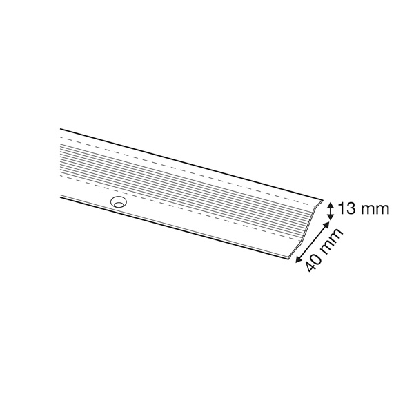 Perfil con marcas de sierra antideslizante. Ideal para cubrir las juntas entre dos suelos a distinta altura, desde 8 hasta 12 mm.