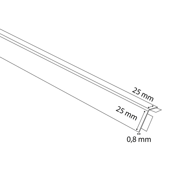 Longitud: 2,5 m. Perfil 25x25 mm. Espesor: 0,8 mm