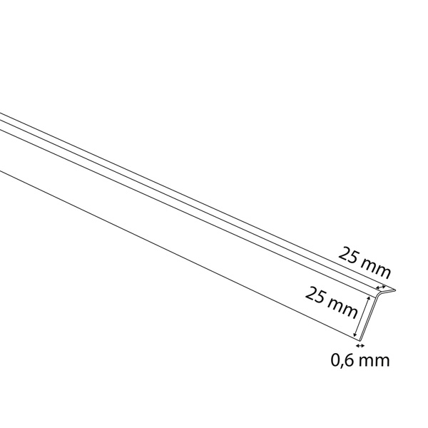 Longitud: 2,5 m. Perfil 25x25mm. Espesor: 0,6 mm