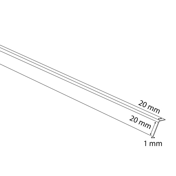 Longitud: 2,5 m. Perfil 20x20 mm. Espesor: 1,0 mm