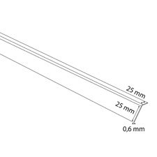 Longitud: 2,5 m. Perfil 25x25 mm. Espesor: 0,6 mm
