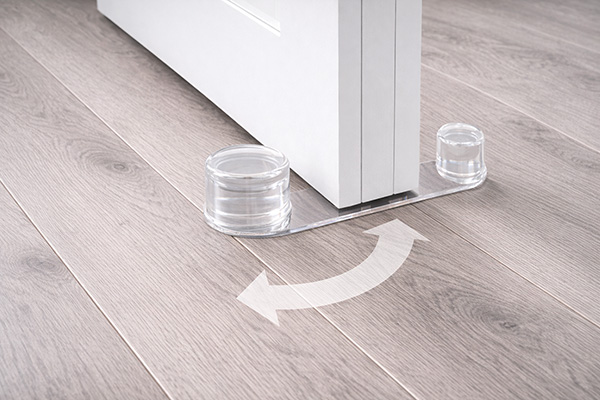 Tope retenedor giratorio fabricado en plástico. Su sistema giratorio permite activar o desactivar el retenedor fácilmente.