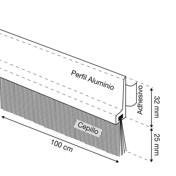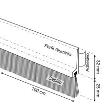 Burlete hecho de aluminio extruido y cepillo de 25 mm de altura.